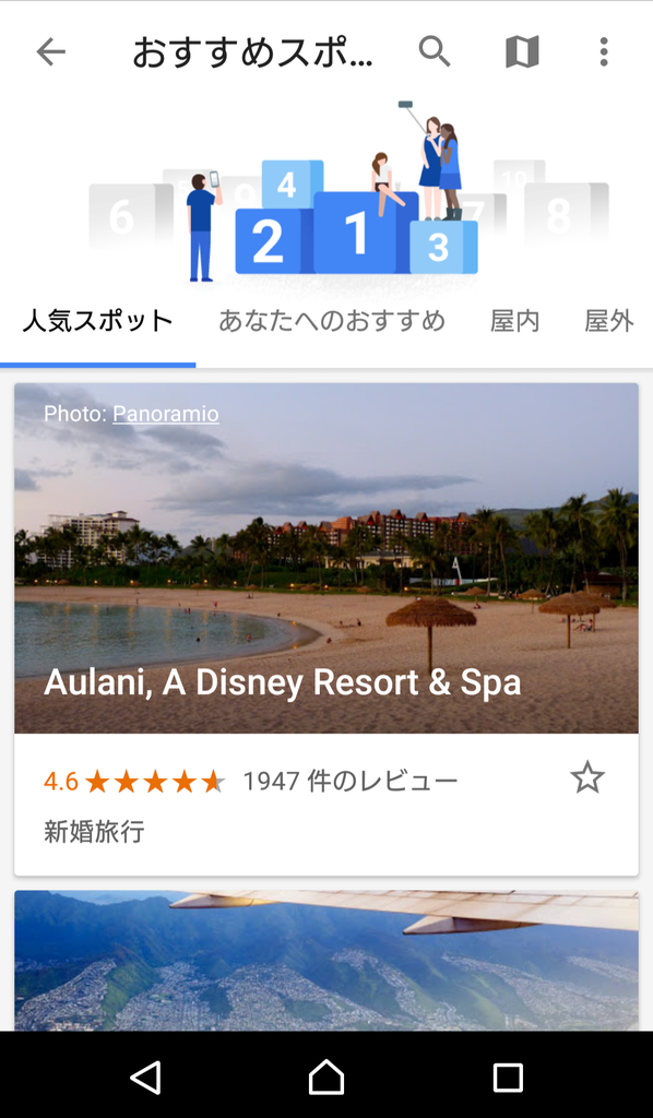おすすめスポットをタップしてみます。